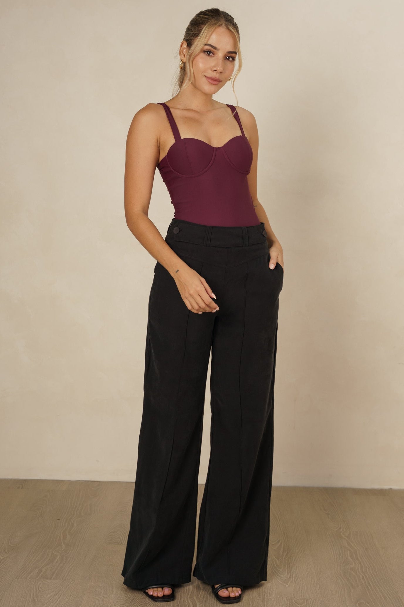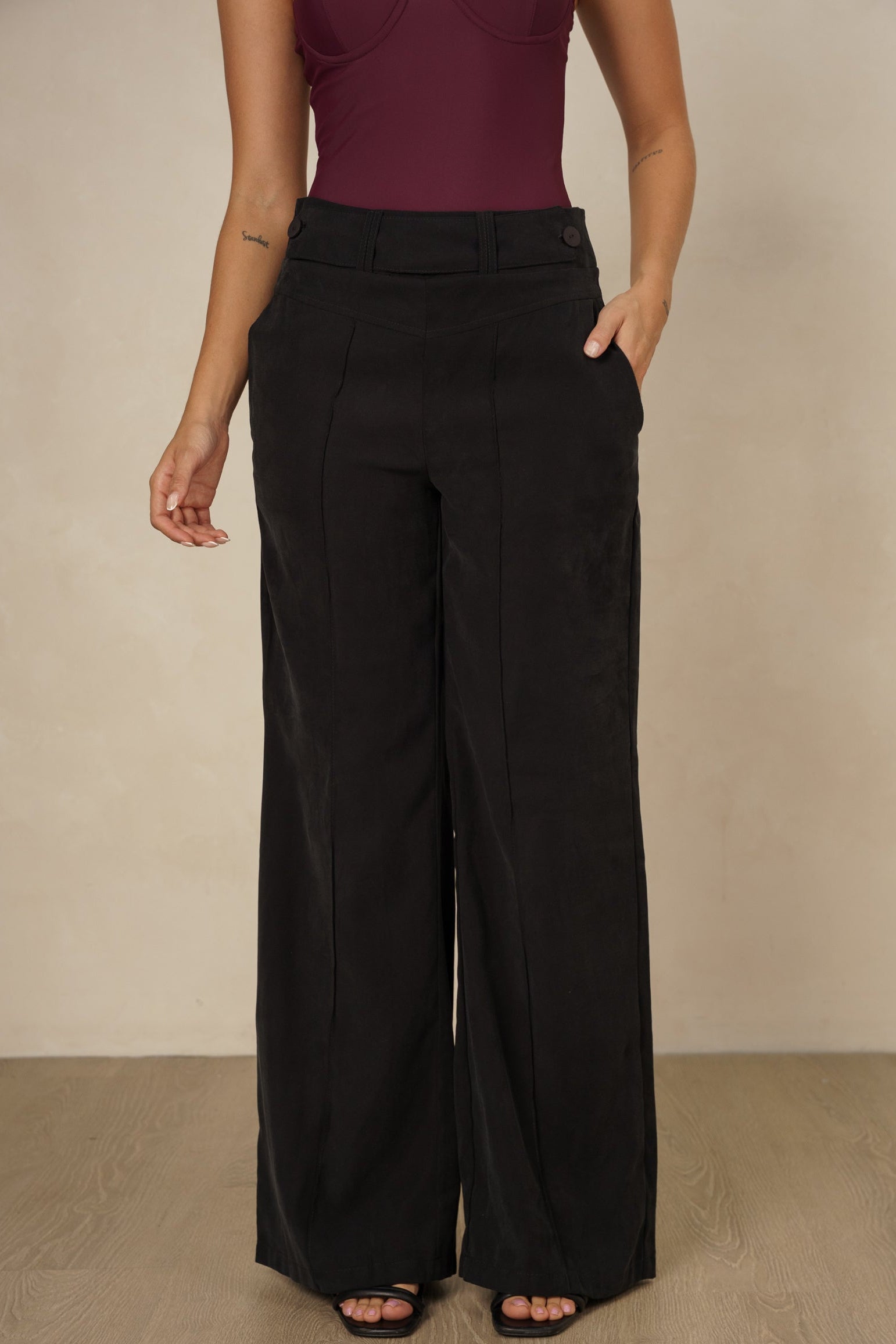 Ideal para combinar con tops ajustados (como el body de la imagen), blusas de seda o un blazer a juego para un look de oficina impecable. Es una prenda clave que funciona perfectamente tanto para eventos formales como para salidas nocturnas con estilo.