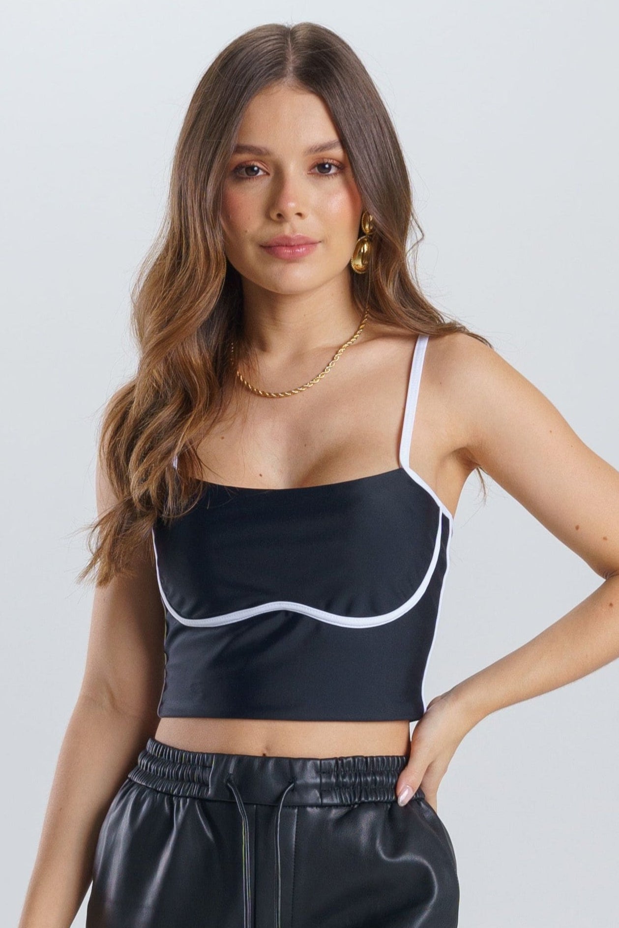 - La modelo usa talla S y mide 1.70 cm